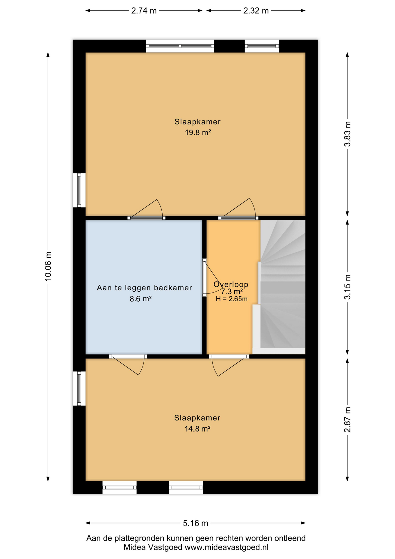 - 1e slaapkamer (afm. 5,16m x 3,83m)