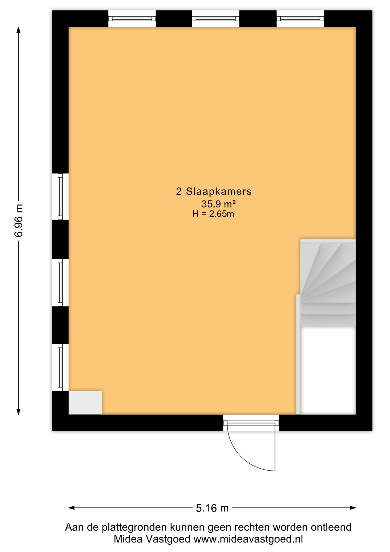 - in te richten verdieping van 6,96m x 5,16m
