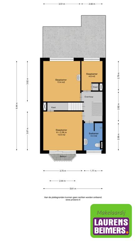 - 3e kleine slaapkamer aan achterzijde met kast (afm. 2,79m x 2,00m)