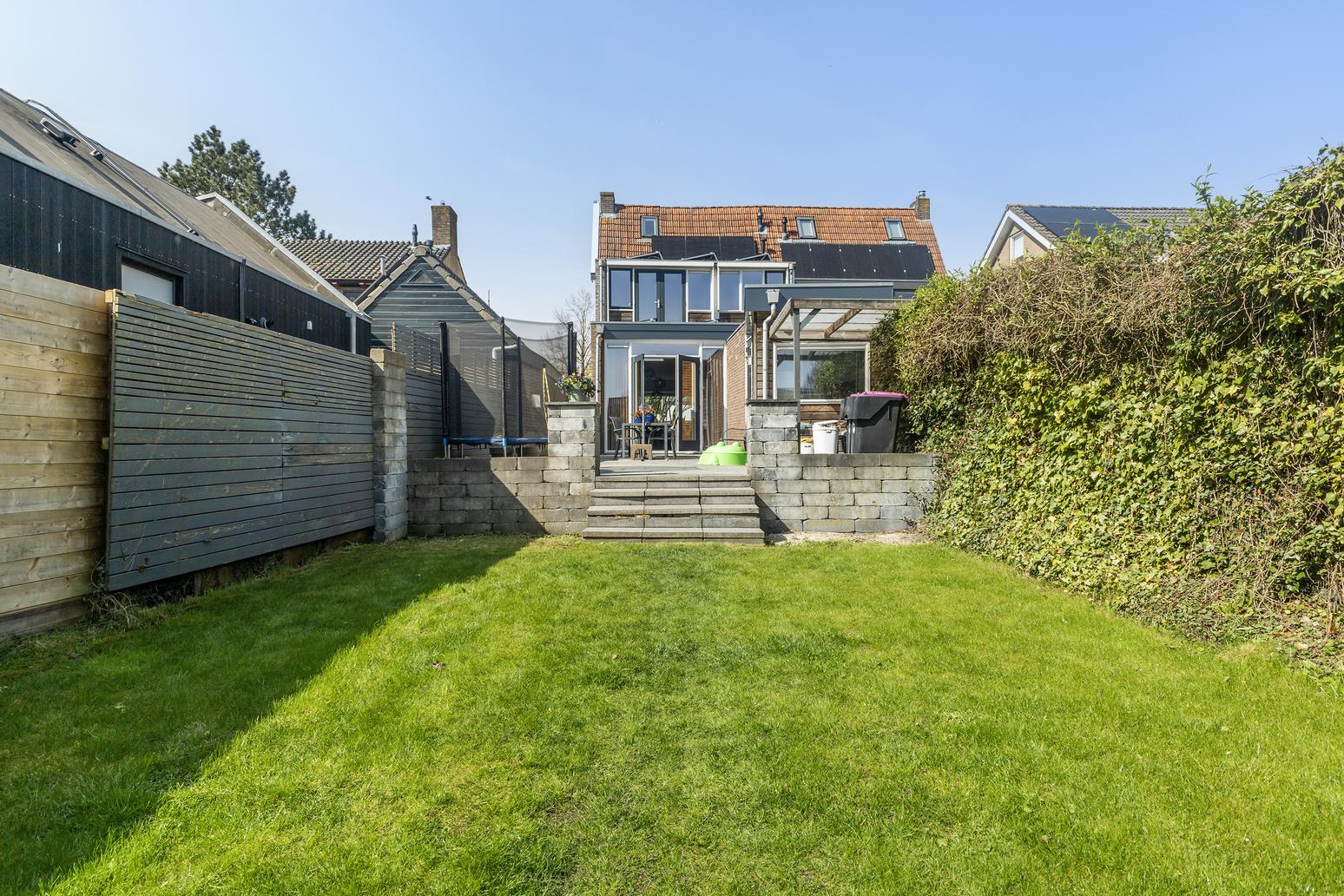 Via de openslaande deuren in de woonkamer bereikt u eveneens de achtertuin. De achtertuin is zonder twijfel één van de grote pluspunten van deze woning. Met een diepte van ruim 40 meter en een ligging op het oosten vindt u hier altijd wel een plek in de zon of juist in de schaduw. De tuin is verzorgd aangelegd en biedt volop privacy en mogelijkheden voor ontspanning en recreatie. Achter in de tuin staat een grote houten berging van circa 25 m², voorzien van elektra en water. Voor de berging bevindt zich een gezellige overkapping waar u tot in de late avonduren kunt genieten van het buitenleven, een heerlijke plek voor lange zomeravonden.