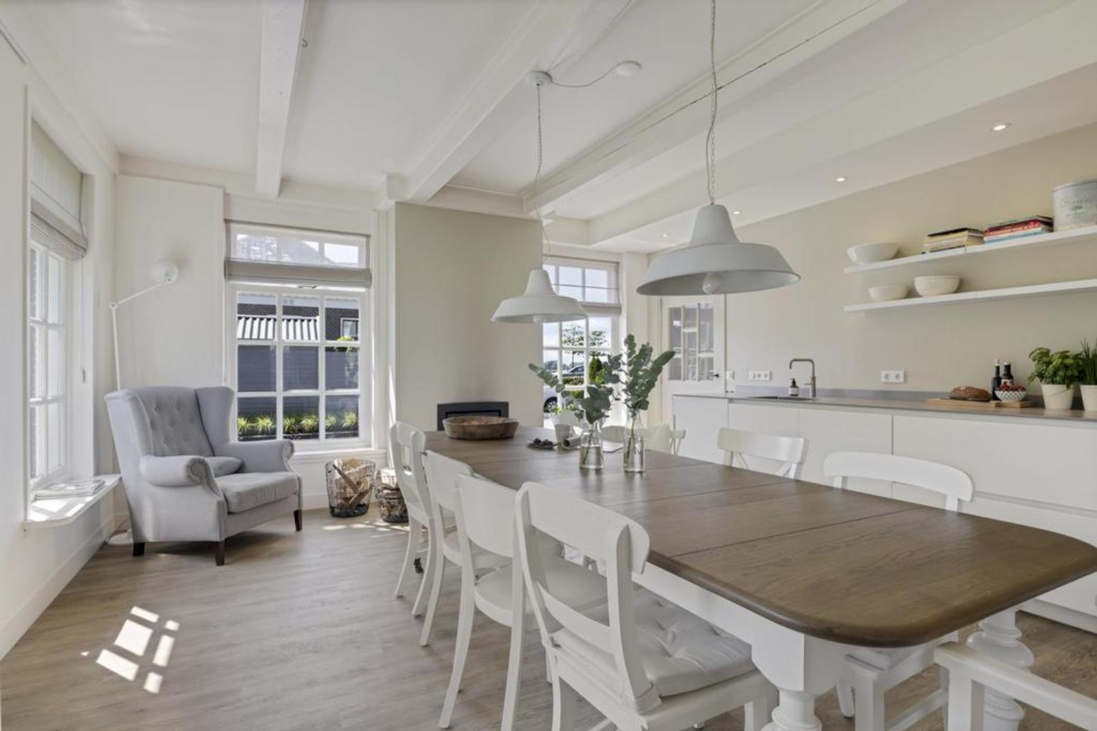 - royale woonkeuken met luxe keuken v.v. inbouwapparatuur, balkenplafond en haard (28 m2)
