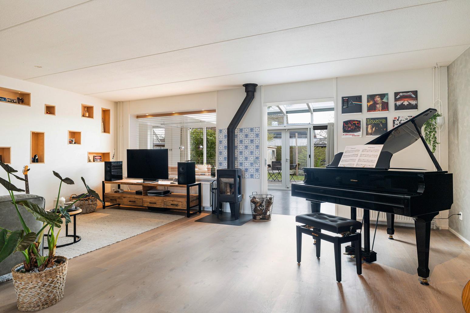 Via de verzorgde voortuin en royale oprit, met ruimte voor twee auto’s, bereikt u de entree van de woning. In de ruime hal treft u het toilet met fonteintje, de meterkast en de trapopgang naar de verdieping. Zodra u de woonkamer binnenstapt, valt direct de ruimte en de aangename sfeer op. De royale living van ca. 44 m² is smaakvol ingericht en voorzien van diverse sfeervolle elementen, waaronder een houtkachel die zorgt voor warmte en karakter tijdens de koudere maanden. Grote raampartijen zorgen voor een prettige lichtinval en een fijne verbinding met buiten.