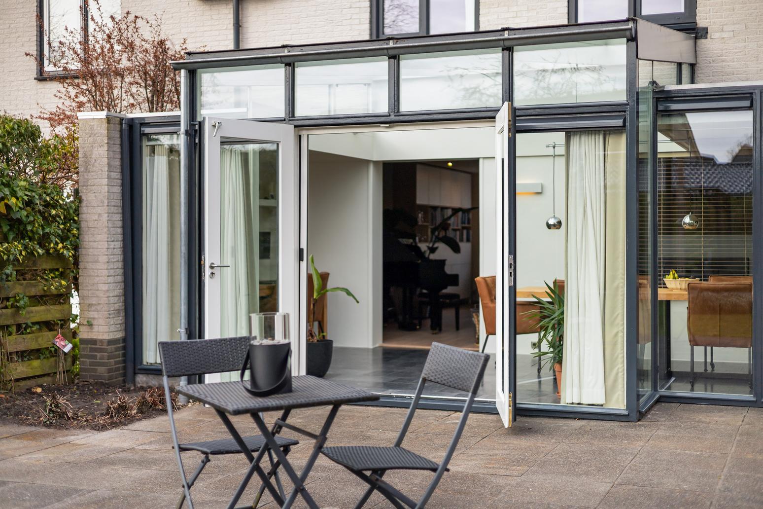 Aan de achterzijde is de woning uitgebouwd met een prachtige serre. Dit is zonder twijfel één van de absolute pluspunten van de woning. Dankzij de grote glaspartijen en openslaande deuren naar de achtertuin is dit een heerlijke plek waar binnen en buiten mooi in elkaar overlopen. De serre is bovendien voorzien van vloerverwarming, waardoor u hier het hele jaar door comfortabel kunt verblijven. Een ideale plek voor lange diners, een kop koffie in de ochtendzon of ontspannen avonden met vrienden en familie. De moderne keuken van het merk Bulthaup sluit perfect aan op het geheel en is uitgevoerd in een strak design. De keuken is voorzien van hoogwaardige inbouwapparatuur, waaronder een Quooker, stoomoven, recirculatieafzuigkap met plasmafilter en een ingebouwd koffiezetapparaat.